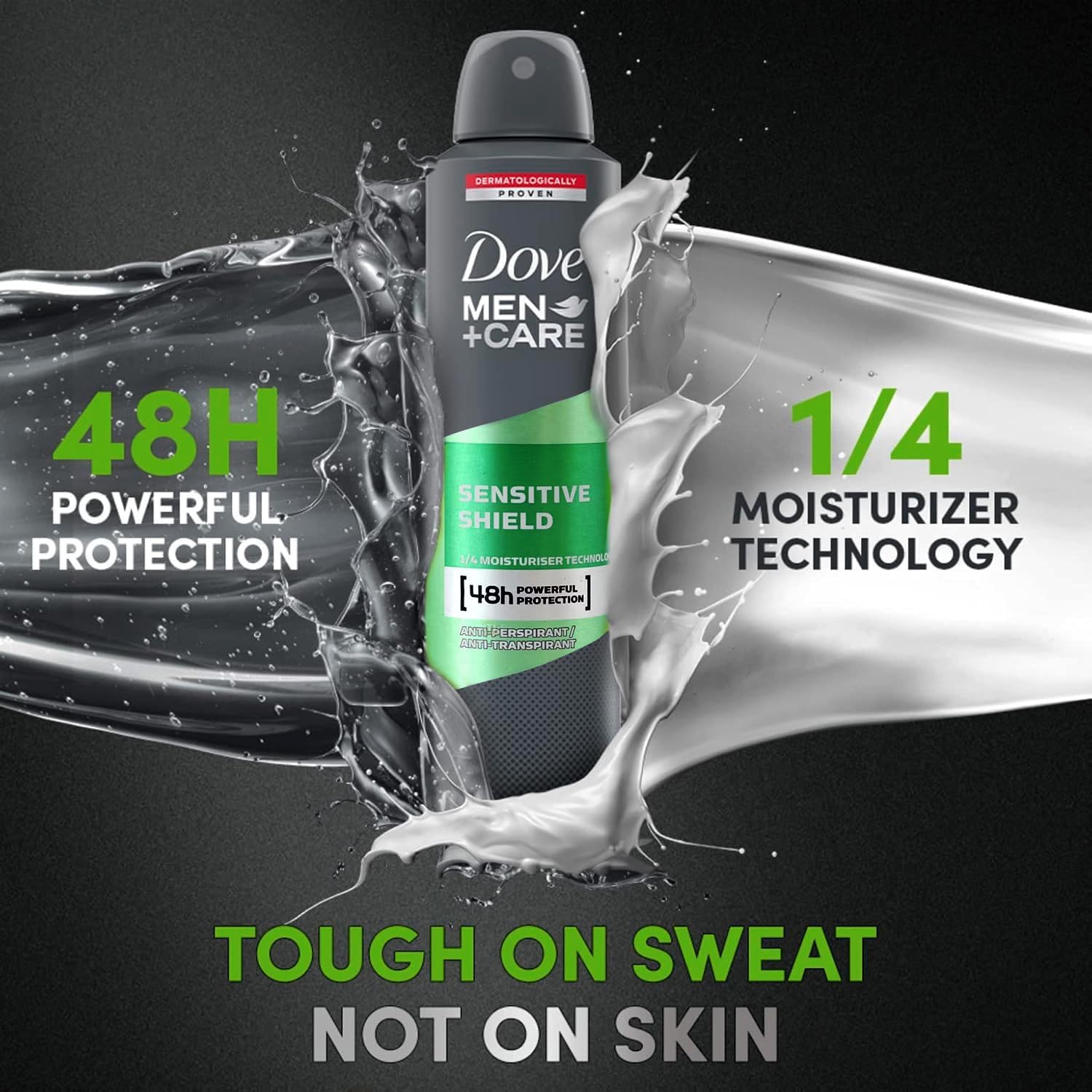 دوف بخاخ مضاد للتعرق للبشرة الحساسة للرجال من ديو 250 مل العائلة. السفر. الحياة سريعة الخطى. هذا هو السبب في أننا بحاجة إلى مضاد للتعرق يمكنه مواكبة التعرق. إذا كنت ترغب في منع العرق من السيطرة على يومك، جرب دوف Men+Care Antiperant Aerosol Sensitive Shield - بخاخ قوي مضاد للتعرق يساعد على محاربة العرق والروائح لمدة تصل إلى 48 ساعة. تساعد تقنية ترطيب ¼ على حماية البشرة من التهيج، مما يعني أنك تستفيد من مضاد التعرق الذي تم اختباره من قبل أطباء الجلد وهو قوي على العرق وليس على البشرة. يتميز برائحة رقيقة تدوم طويلاً. لذا في المرة القادمة التي تقوم فيها بتشغيل قائمة مهامك في المكتب أو تلعب كرة القدم مع الأطفال، سيكون عرقك تحت السيطرة. أخيرًا، سيكون لديك مضاد عرق قوي يعمل بسرعة وبقوة مثلك. اختر درع دوف Men + Care Sensitive Shield للمساعدة في الحفاظ على جفافك ومحاربة التهيج. قم بهز العلبة لتفعيل المكونات. امسكها على بعد ست بوصات من تحت الإبط، وتأكد من أنك تمسك العلبة في وضع مستقيم بالكامل أثناء القيام بذلك. ضع رشقتين أو ثلاث دفعات قصيرة من البخاخ - لا تدوم أكثر من ثانية أو ثانيتين - ثم تنتهي من ذلك. عزز تقنية درع الأيروسول الحساس المضاد للتعرق للرجال + كير من دوف عن طريق وضعه ليلاً. المفتاح يكمن في حالة بشرتك؛ ليس فقط معدل التعرق في جسمك أعلى في الصباح، ولكن الاستحمام الساخن يفتح المسام أيضًا، مما يجعله أقل تقبلاً لأي مضاد للتعرق يتم وضعه بعد ذلك. بشرتك أكثر جفافاً وبرودة في الليل، لذلك لديها أفضل فرصة ممكنة للغطس فيها.