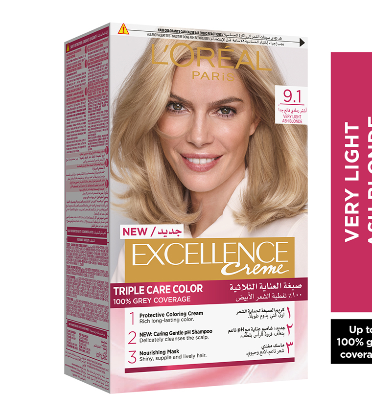 صبغة الحماية الثلاثية ايكسلنس اشقر رمادي فاتح جداً 9.1 من لوريال باريس: