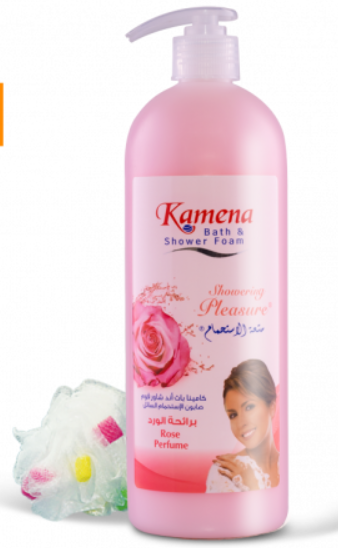 كامينا باث اند شاور فوم 750 مل بمضخة + لوفة هدية - برائحة الورد