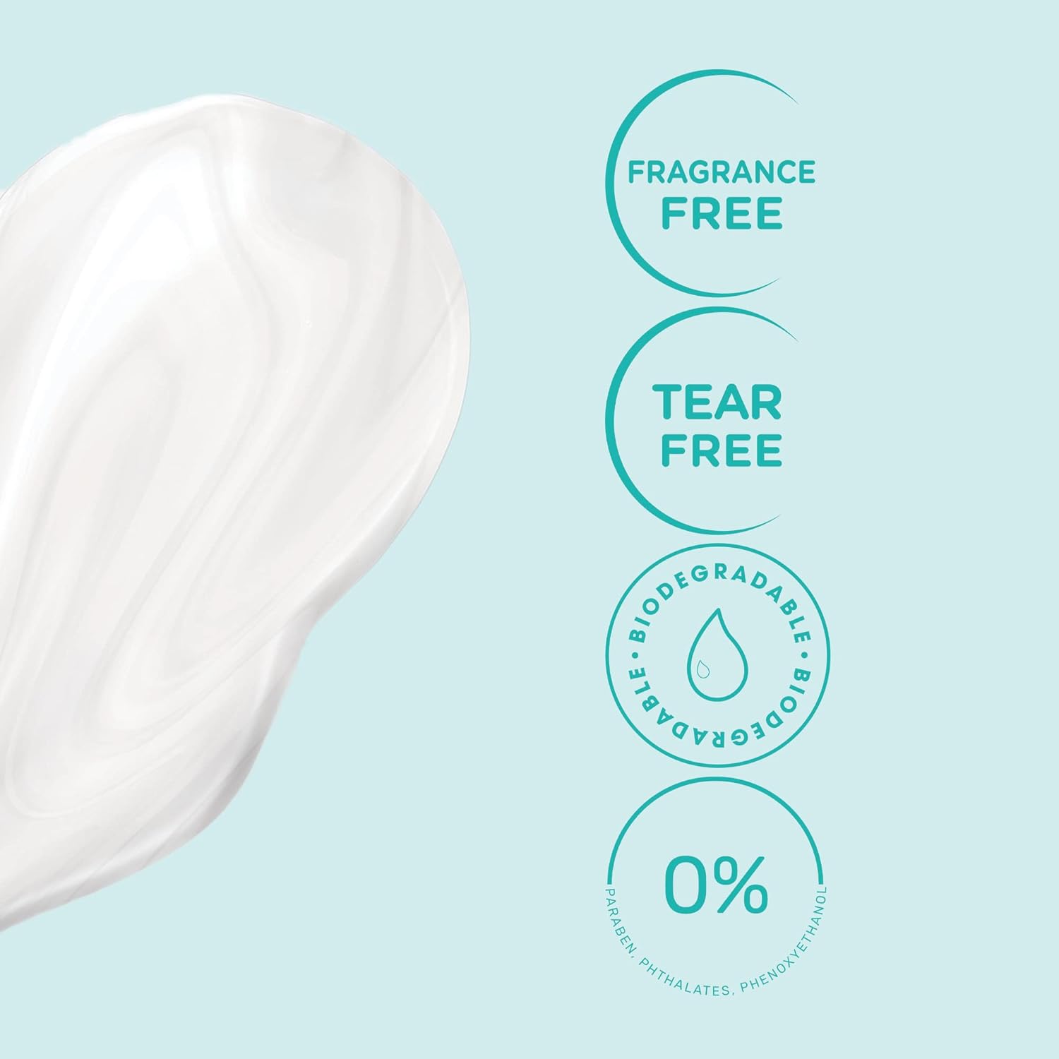 تركيبة لا تسبب الدموع: مصمم لمنع تهيج العين، يضمن جل التنظيف الخالي من التمزق وقت استحمام خالٍ من الإجهاد، مما يجعله مثاليًا لبشرة طفلك الحساسة.