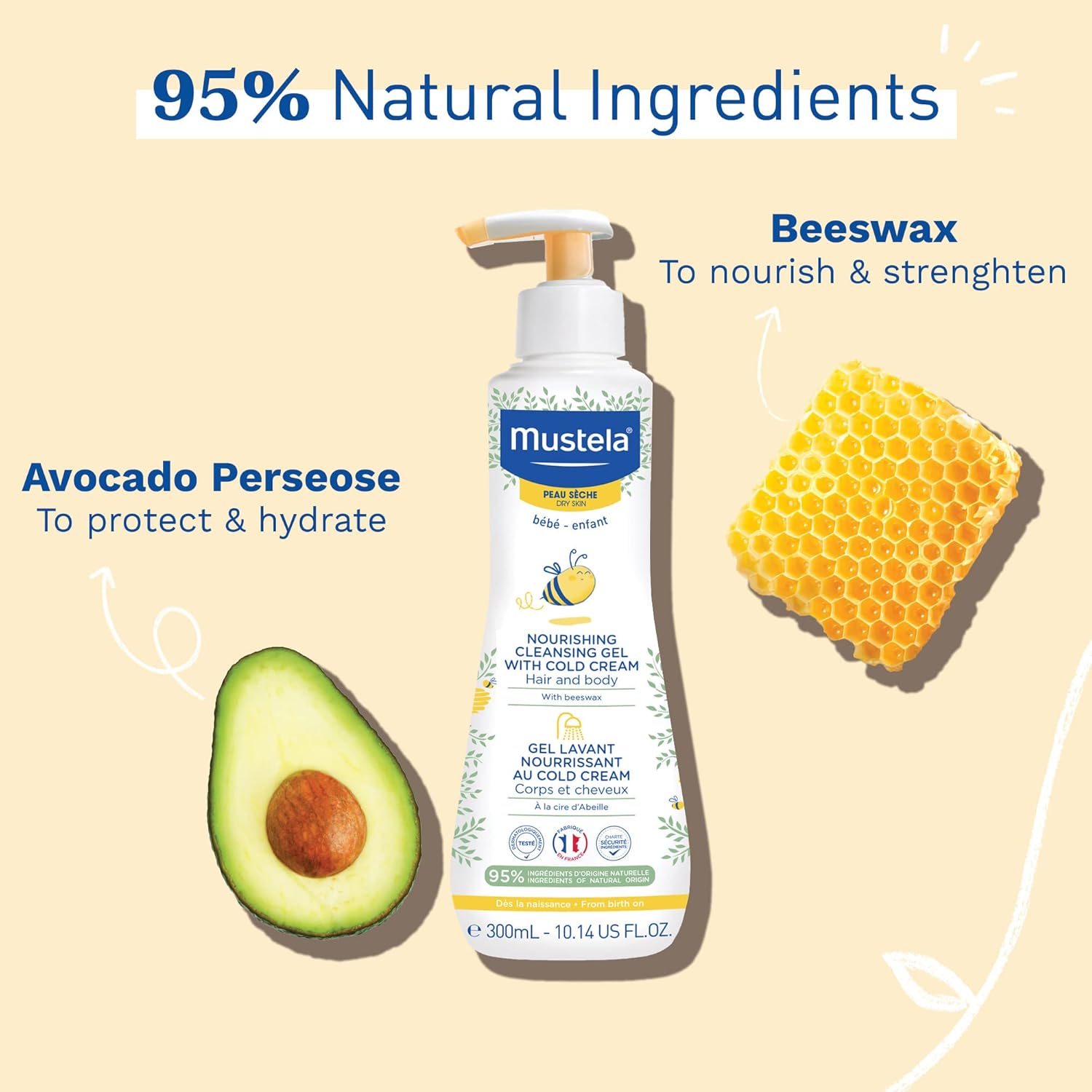 موستيلا جل تنظيف المغذي للاطفال للشعر والجسم 300 مل