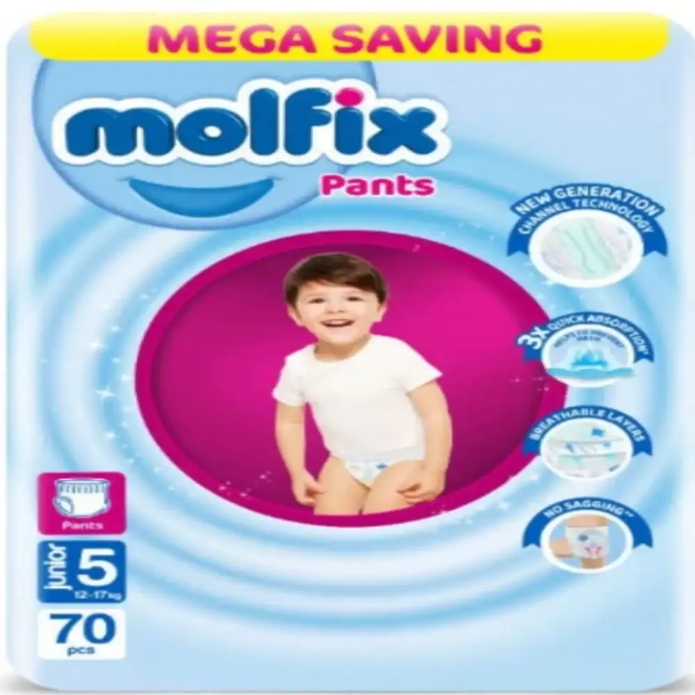 عن هذه السلعة حفاضات مولفيكس توفر حماية قنوية من الجيل الجديد امتصاص سريع يوفر أقصى درجات الجفاف توفر الملاءة العلوية الناعمة من هاي لوفت نعومة قطنية مع ملاءة علوية عالية ومموجة هيكل خارجي جيد التهوية يمنع البلل ويوفر حماية للبشرة عبوة توفير كبيرة