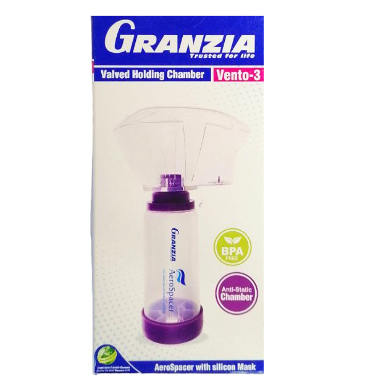 جرانزيا فينتو 3 ايروشامبر وشامبر قناع استنشاق للكبار الذين يعانون من الخناق ، الربو ، وغيرها من القضايا التنفسية ،عندما يواجه المرضى مشكلة في استخدام أجهزة الاستنشاق بالجرعات المقننة ، ماسك سيليكون متعدد الاستخدام ، خامة عالية الجودة ومضاد لالتصاق الدواء (يضمن وصول الجرعة كاملة للرئة) ، تصميم فينتو الأصلي لتصميم أصغر وأكثر راحة ، قناع خفيف الوزن ، جهاز صغير الحجم مما يجعل من السهل حمله ووضعه فى حقيبه اليد ، يساعد المرضى فى استنشاق الأدوية بشكل صحيح والاستفادة منه ، صمام الزفير يقلل من إعادة التنفس ، ويوجه تدفق الزفير بعيدا عن وجه المريض ، استجابة في اتجاه واحد الشهيق صمام يفتح مع الحد الأدنى من الجهد الشهيق ، يغلق على الزفير ، يحتفظ الدواء داخل الغرفة للتنفس المقبل ، تشجع المرضى على التنفس ببطء.