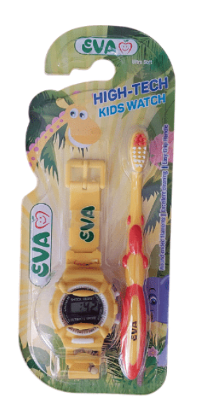 ايفا فرشة اسنان اطفال+ساعة رقمية - متعددة الألوان