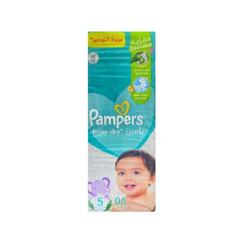 بامبرز حفاضات بيبي دراي مقاس 5 كبير جدا – 58 حفاضة