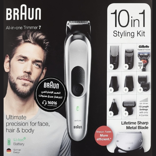 مجموعة براون متعددة الاستخدام 10 في 1، 8 ملحقات وشفرة جيليت فيوجن 5 برو جلايد - MGK7220