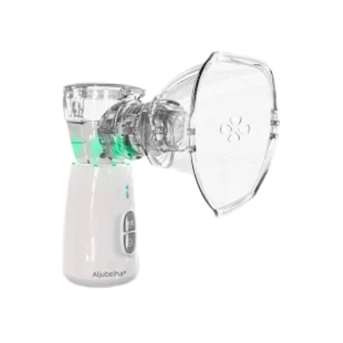 جهاز استنشاق بخار شبكي إلكتروني بالموجات فوق الصوتية مزود بـ 2 قناع وجه و2 بطارية للبالغين والأطفال من الجبيهة