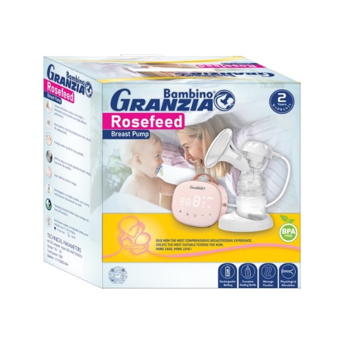 تتميز مضخة الثدي Granzia Bambino Rosefeed بمجموعة من الميزات التي تجعلها الخيار الأمثل للأمهات:كفاءة عالية في شفط الحليب:تضمن تقنية الشفط المتقدمة استخلاص الحليب بكفاءة وسرعة، مما يوفر وقت الأم الثمين.راحة فائقة:صُممت المضخة لتوفر تجربة شفط مريحة وغير مؤلمة، مع دروع ثدي مصممة بعناية لتناسب مختلف الأحجام وتقليل الضغط.تصميم أنيق ومحمول:تأتي بلون وردي جذاب وحجم مدمج، بالإضافة إلى حقيبة حمل أنيقة، مما يجعلها مثالية للاستخدام في المنزل أو العمل أو أثناء السفر.سهولة الاستخدام والتنظيف:واجهة تحكم بسيطة وشاشة رقمية واضحة تجعل عملية التشغيل سهلة، كما أن الأجزاء القابلة للفك والغسل تضمن أعلى مستويات النظافة.