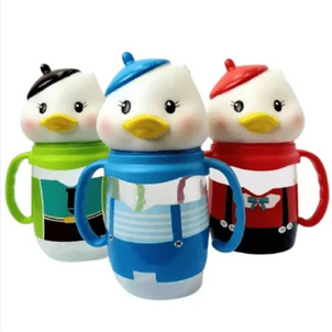 زجاجة رضاعة للأطفال بمقبض على شكل فم البطة سعة 300 مل، لون أخضر