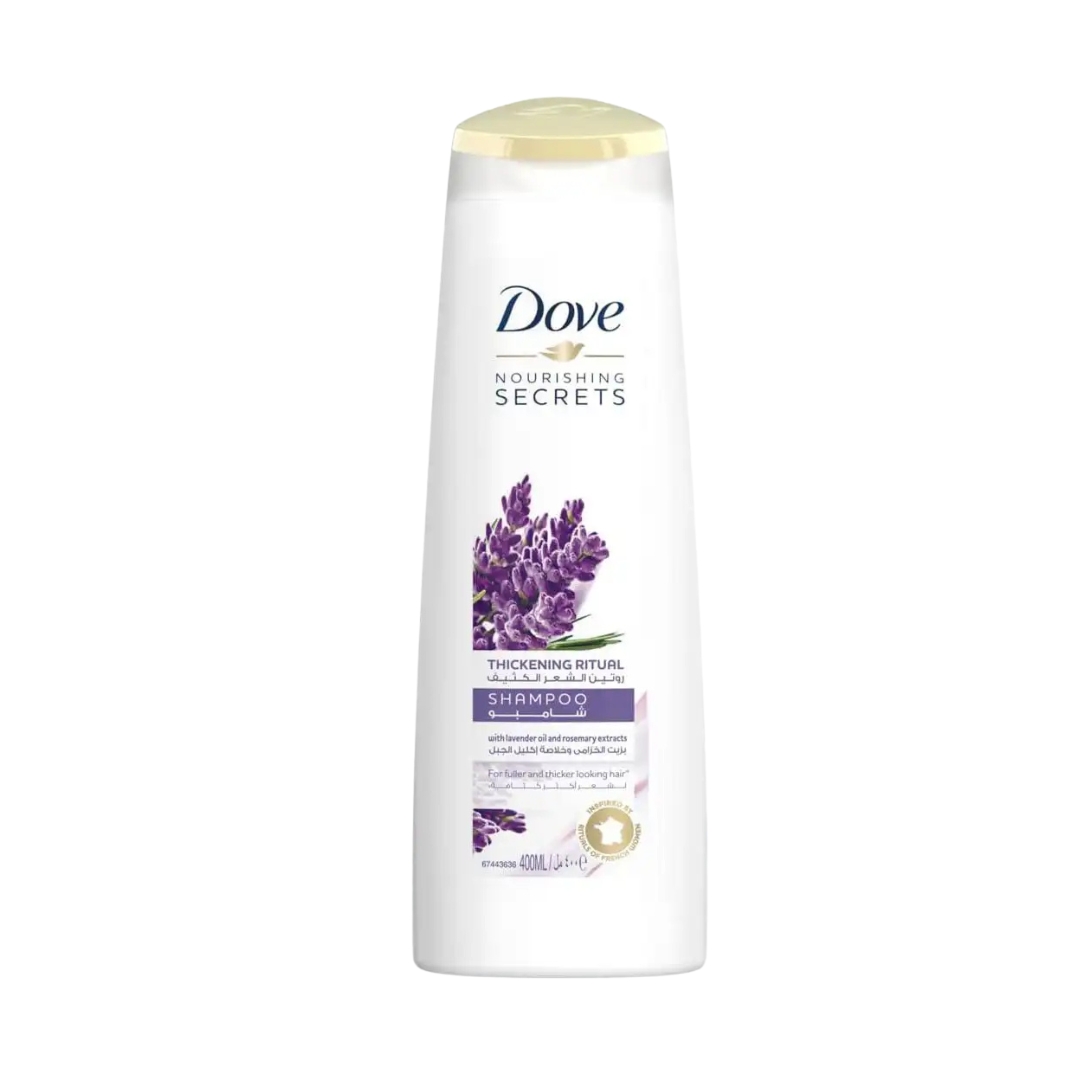 شامبو دوف لتكثيف الشعر هو دوڤ روتين الشعر الكثيف من أسرار التغذية مستوحى من طقوس جمال الشعر للمرأة الفرنسية ، شامبو مغذي غني بزيت اللافندر وإكليل الجبل ، تركيبة كريمية تلطف الشعر بعمق دون أن تثقله ، يساعد على تعزيز الحجم وحركته من أول غسلة لشعر صحي وكثيف ، مناسب للاستخدام اليومي ، تم تصميم دوڤ روتين الشعر الكثيف الجديد لتغذية شعرك وتعزيز حجمه. مستوحى من النساء الفرنسيات اللواتي يستخدمن مزيج من زيت اللافندر ومستخلصات إكليل الجبل لتغذية الشعر والعناية به.